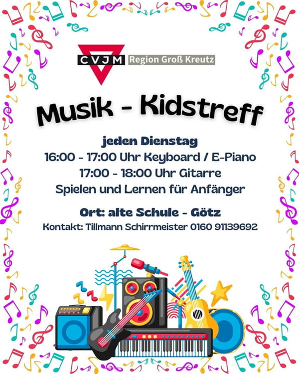 Wir üben an jedem Dienstag von 16:00 - 17:00 Uhr Keyboard und von 17:00 bis 18:00 Uhr Gitarre in der alten Schule in Götz